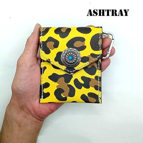 新作です。本革レザー 携帯灰皿 UVプリントレザー レオパード ヒョウ柄 ポケット灰皿 コインケース 小銭入れ カードケース ターコイズ コンチョ 使用 カラビナ付き ハンドメイド レザークラフト handmade leathercraf 薄めの豚革にレオパード ヒョウ柄UVプリントレザーを ...