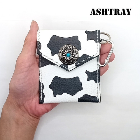 新作です。本革レザー携帯灰皿UVプリントレザーアニマル牛柄 ホルスタイン ポケット灰皿 ハンドメイドレザークラフトhandmadeleathercraf アイコス iQOSグローglo電子紙巻手巻きタバコ