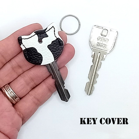 大人気! 猫 ネコ 好きの方へ 本革 かわいい レザー キーカバー UVプリントレザー 牛柄 ホルスタイン 牛革 レザー キーケース レザー キーホルダー レザー キーリング 猫好きに。本革製の猫のかわいいキーカバー。鍵にかぶせるだけでOKです。一般的な鍵に対応しています。い ...