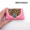 新作です。本革レザーミニウォレット財布レオパードヒョウ柄ピンクかわいい小さいレディース財布